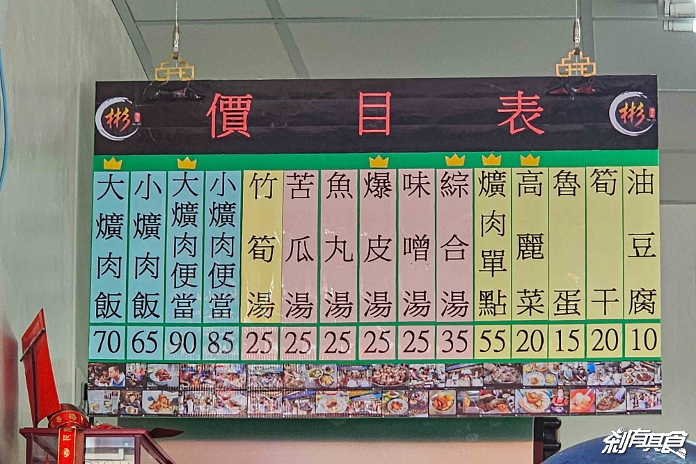 有爌肉飯、爌肉飯便當,湯、魯蛋、筍乾…等,最新價格請參考上圖。