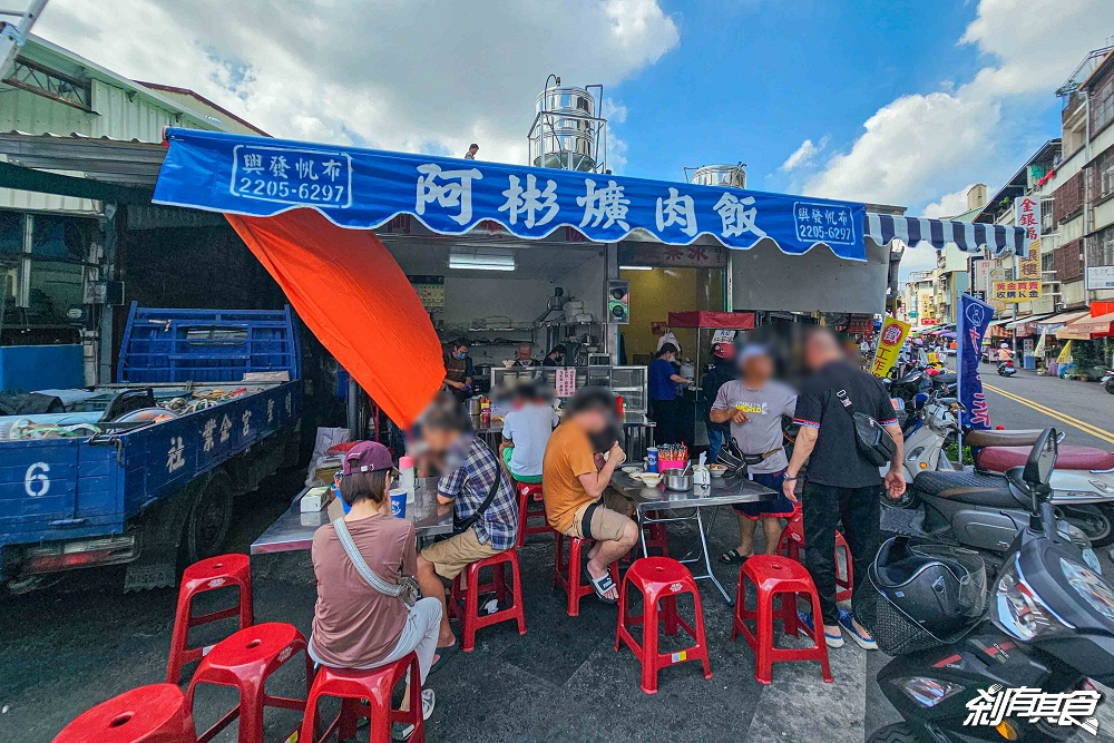 「阿彬爌肉飯」位於樂群街、自立街交叉口,以前上學都會經過,如果我媽來不及準備早餐,還會先載我們來這裡吃,呵