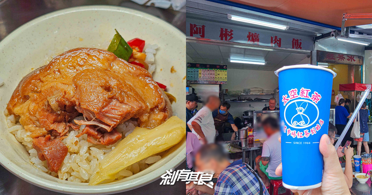 台中第五市場美食 「阿彬爌肉飯」回來了!之前跟第五市場發生火災受到波及,停業了一個月多後重新開始營業,我們最近回訪發現人潮依舊不斷,滷到入味且軟爛的爌肉一樣好吃,再配上一杯60年老店「太空紅茶冰」的紅茶真的是絕配,台中中式早餐大家快一起來看看吧~
