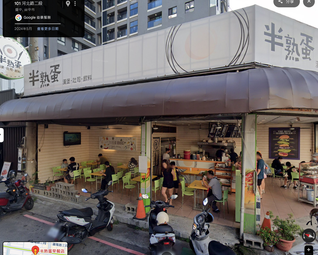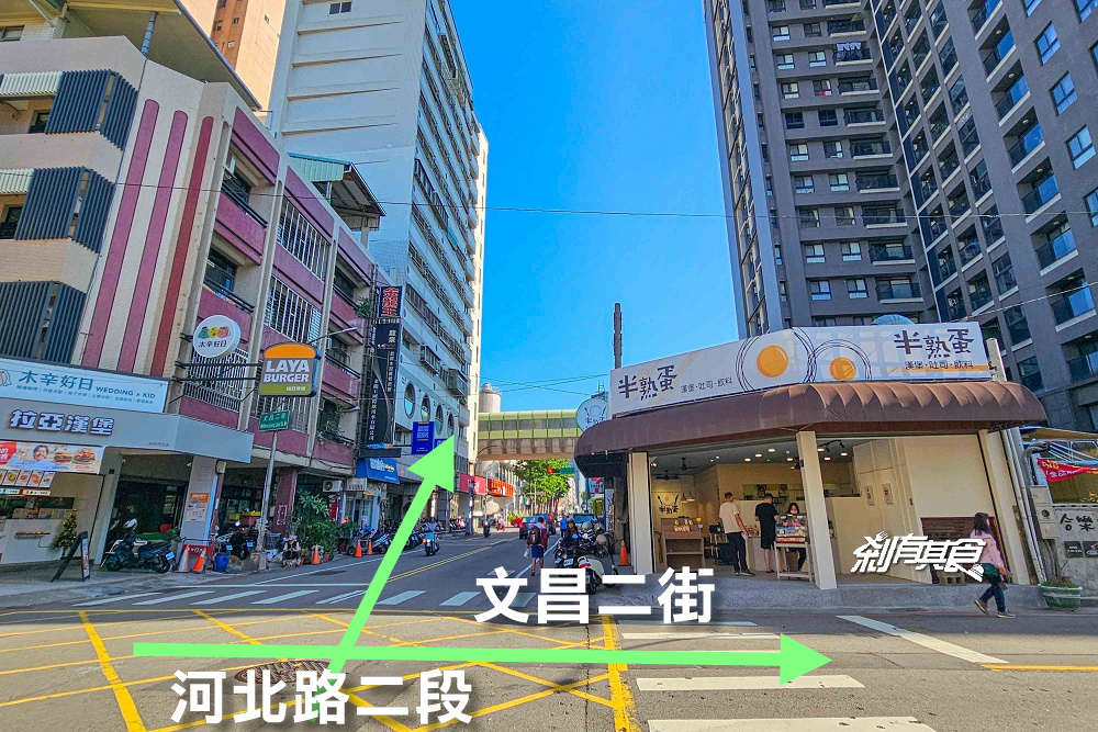「半熟蛋早餐店」位於文昌二行、河北路二段交叉口,光是對面就有拉亞漢堡、晨間廚房、早安晨漾 三間早餐店,算是早餐店一級戰區。