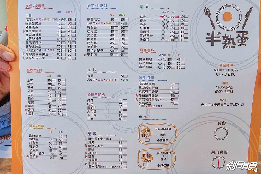 台中中式早餐「半熟蛋早餐店」文章給大家參考囉~也歡迎加入「剎有其食FB粉絲團、剎有其食IG」,隨時追蹤最新訊息!