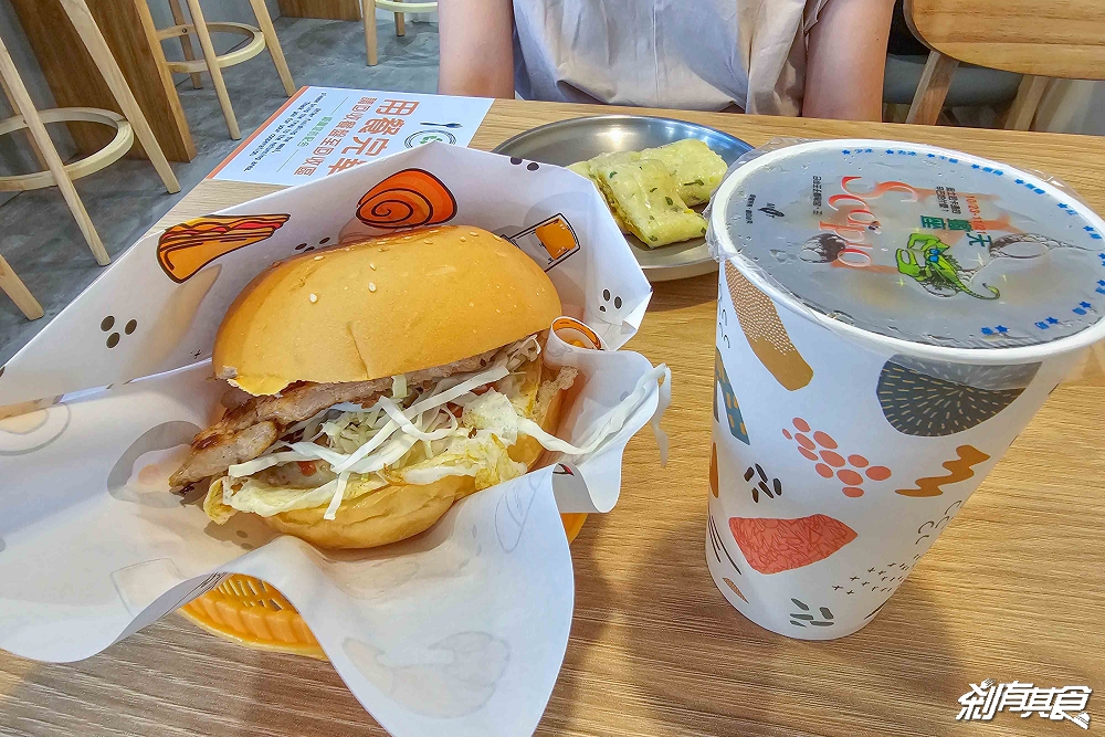 「香嫩里肌蛋漢堡」內容物有烤肉片、生菜跟蛋,味道是中規中矩,熟悉的早餐店味道。