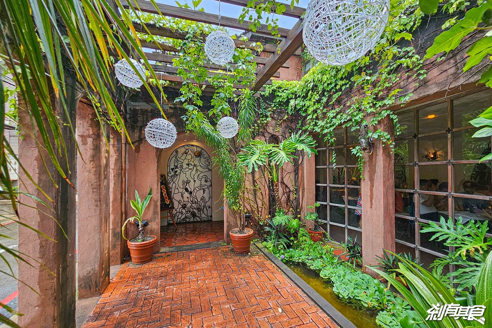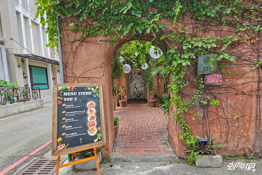 「藍洞義式廚房」的外觀超有義式風情,綠色藤蔓爬滿了牆面,有一點像歐式古堡的感覺,讓人彷彿置身於義大利小鎮。