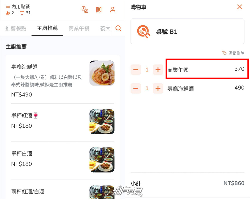 採用「掃碼點餐」,裡面有「商業午餐」的項目給它點下去就對了,吃完再去櫃台結帳即可。