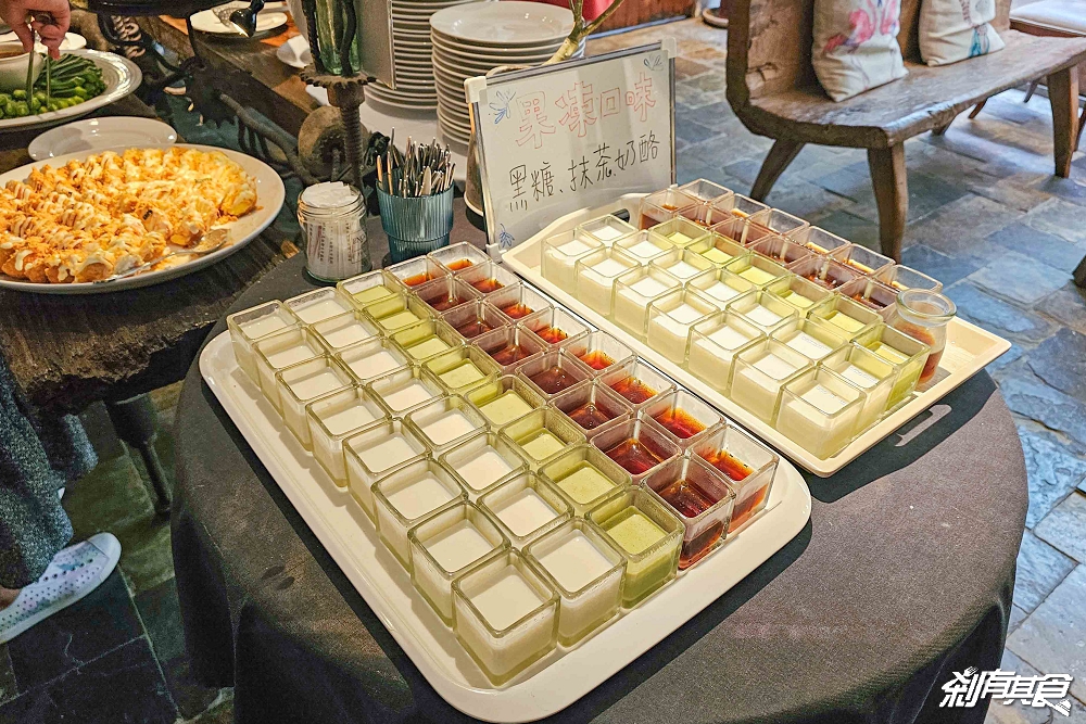 最後來吃甜點「果凍」有黑糖、抹茶跟奶酪三種口味,當天是抹茶口味最快被拿光XD