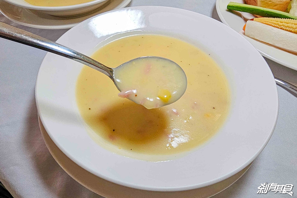 經典的玉米濃湯,做法是偏西式做法那種,濃稠但不會結塊,很好喝👍