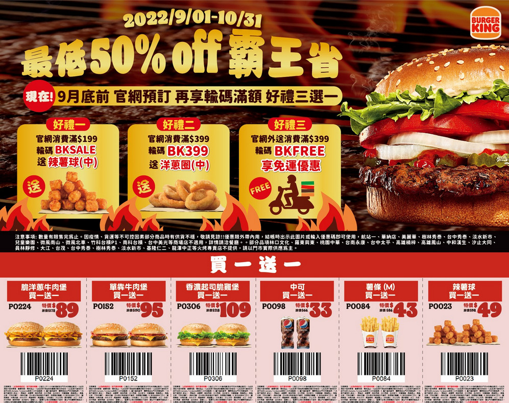 ■ 活動門市:漢堡王全省門市 (機場與兒童樂園門市除外)