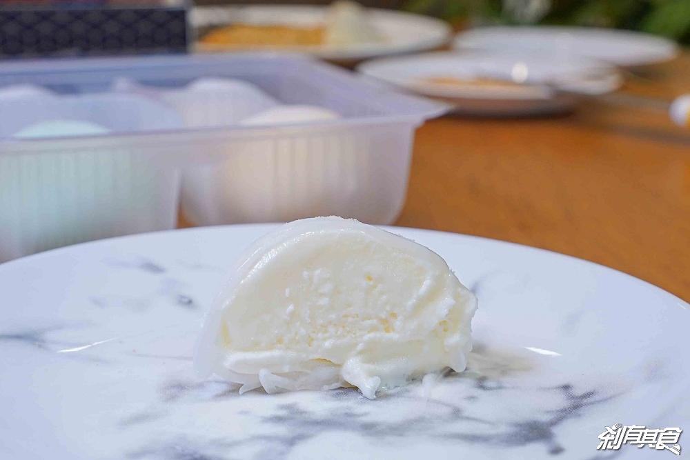 「香草麻糬」外層是軟Q的麻糬皮,中間是香草冰淇淋,吃起來香濃好吃,好像吃高檔日本無菜單料理最後一道會推出的冰淇淋大福,高級感十足又好吃。