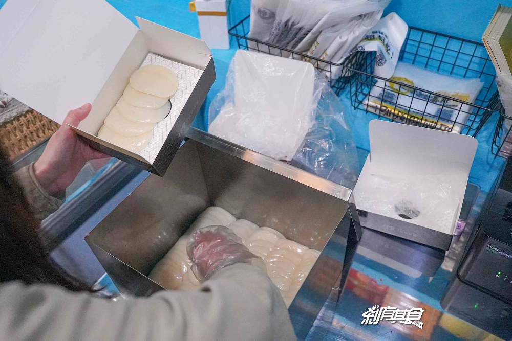 因為麻糬的最佳賞味期非常短,所以他們努力研發出最新產品「冷凍麻糬」,未拆封可以冷凍保存8個月,冷凍麻糬放常溫1-2小時可以回到最佳口感(看當天天氣、氣溫狀況而有所以不同)。