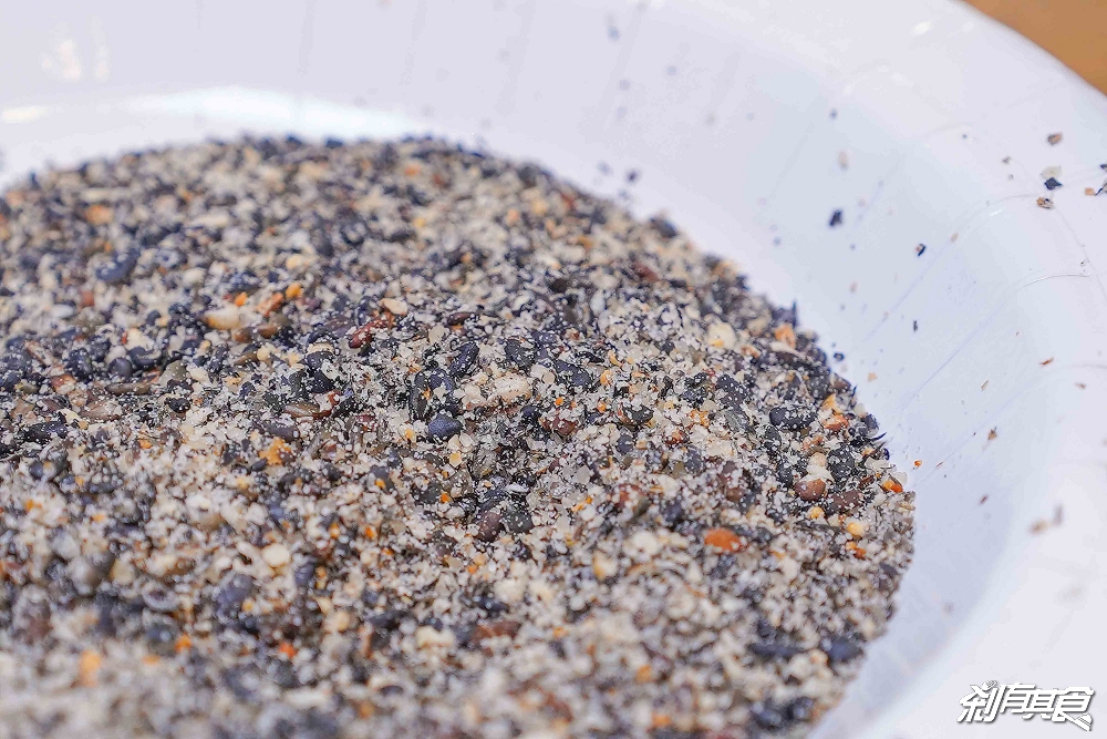 「芝麻粉」用了黑白兩種芝麻來製作,照片中可以看到有粗細不同的芝麻顆粒及糖粉,這也是香氣爆棚的原因,芝麻控千萬別錯過~
