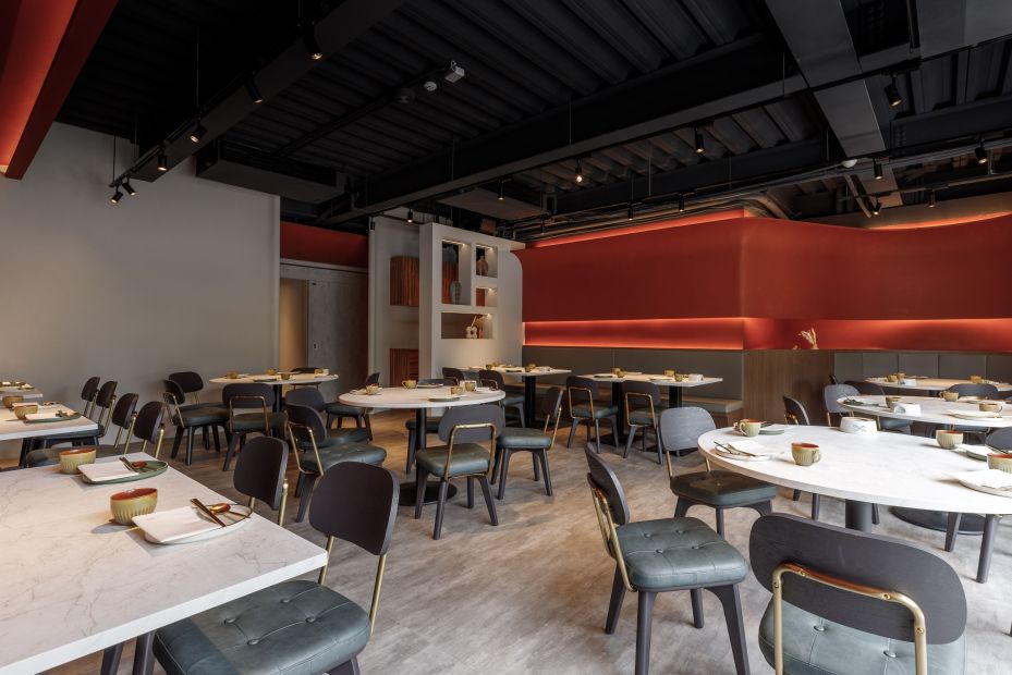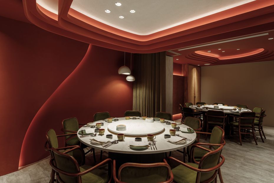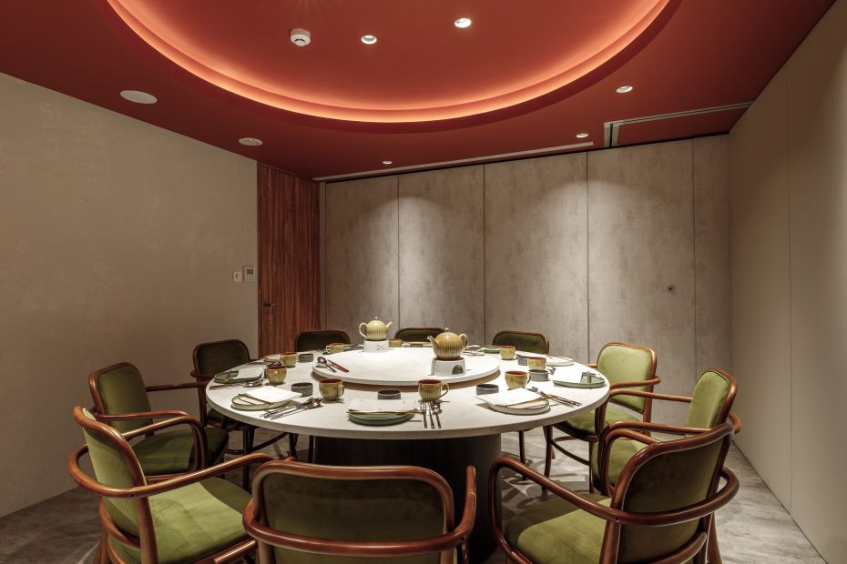 九華樓台中 | 38年老字號粵菜「九華樓」終於插旗台中!,九華樓春大直店位於台北大直英迪格酒店的春大直商場,主打高級精緻粵菜料理,以結合傳統與現代手法聞名,是台灣高檔粵菜餐廳的代表之一,「九華樓朝富店」餐廳裝潢呈現內斂沉靜的東方美學。透過幾何語言與弧形轉折,營造柔和韻律,融合東方穩重與現代開放,空間寬敞舒適,有多間私人包廂,很受企業聚餐與明星、藝人宴會喜愛。