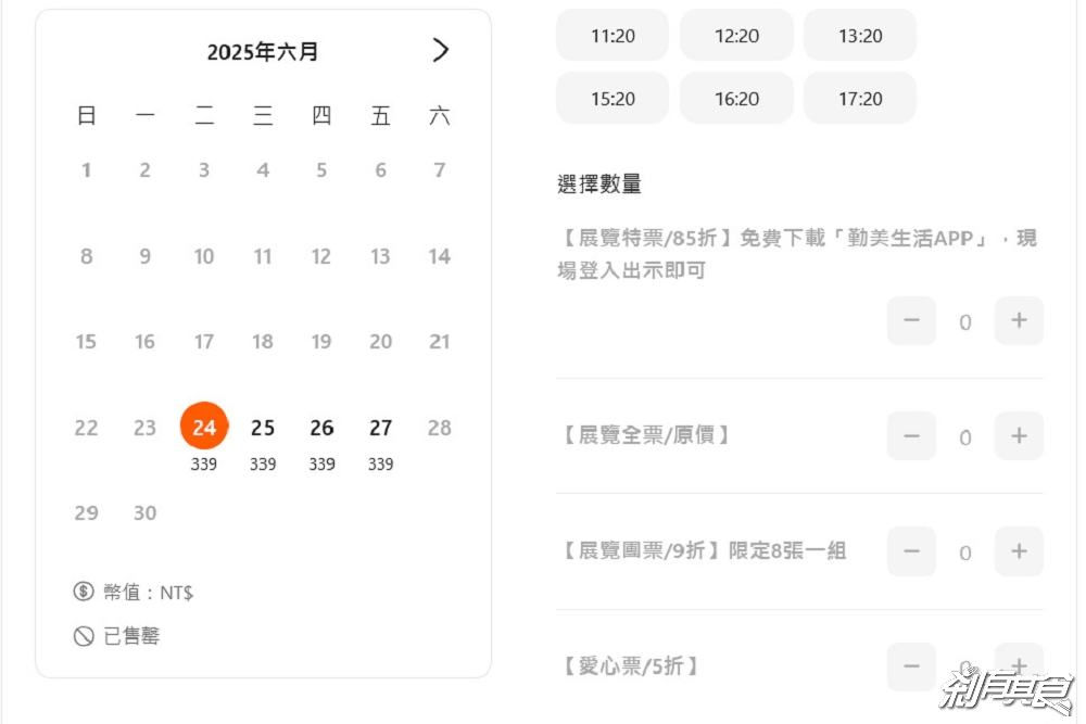 ▲ 購票頁面如上,可選擇場次,若是不能點的就是該場次賣完了,建議早點下訂囉~