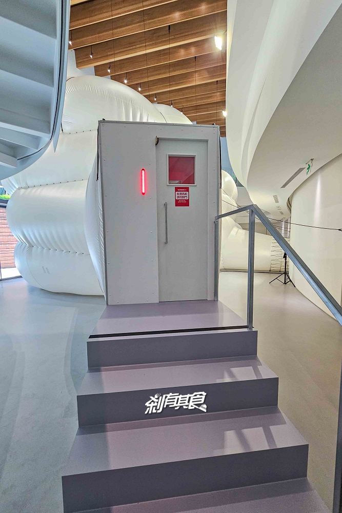 記得先去上廁所,畢竟要玩40分鐘,進出有一個閘門需要工作人員操作,據說是不要讓充氣結構裝置裡面的氣體太快消失的原因,看起來是不是很像要進入太空艙或潛水艇的感覺呢?😆