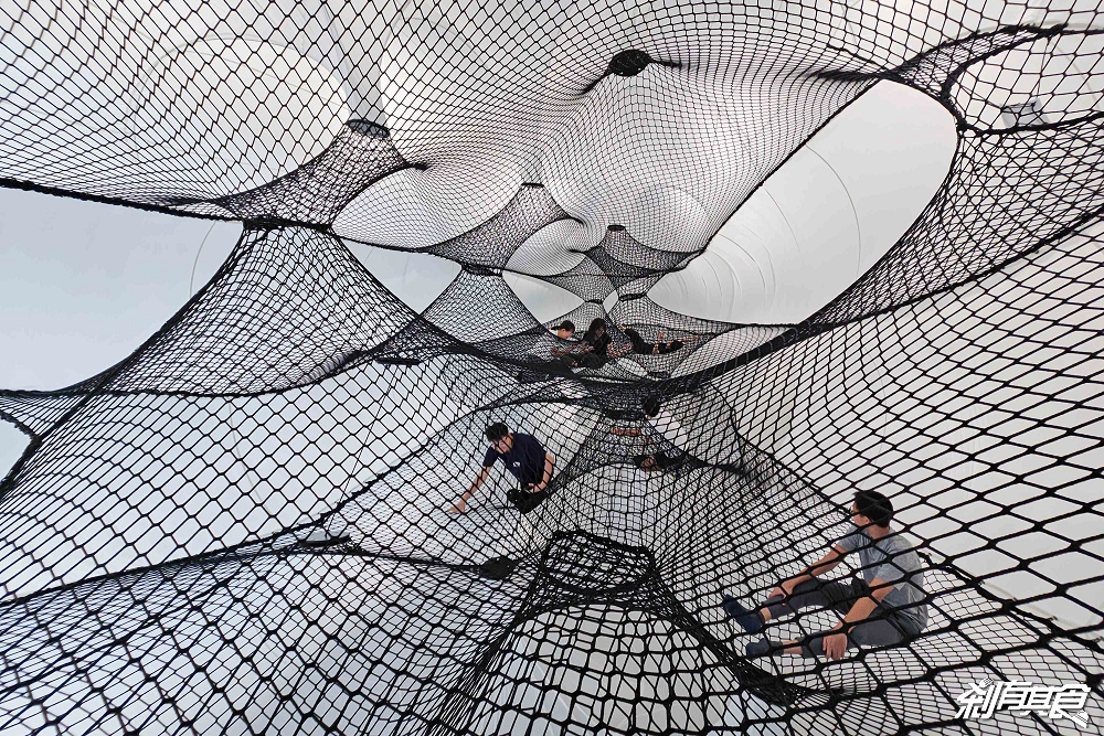 外觀像泡芙,裡面是網狀結構,你要攀爬、穿越、坐下或躺下都可以,非常自在舒服,只是其他人在移動的時候,你會感受到或多或少的搖動 😆