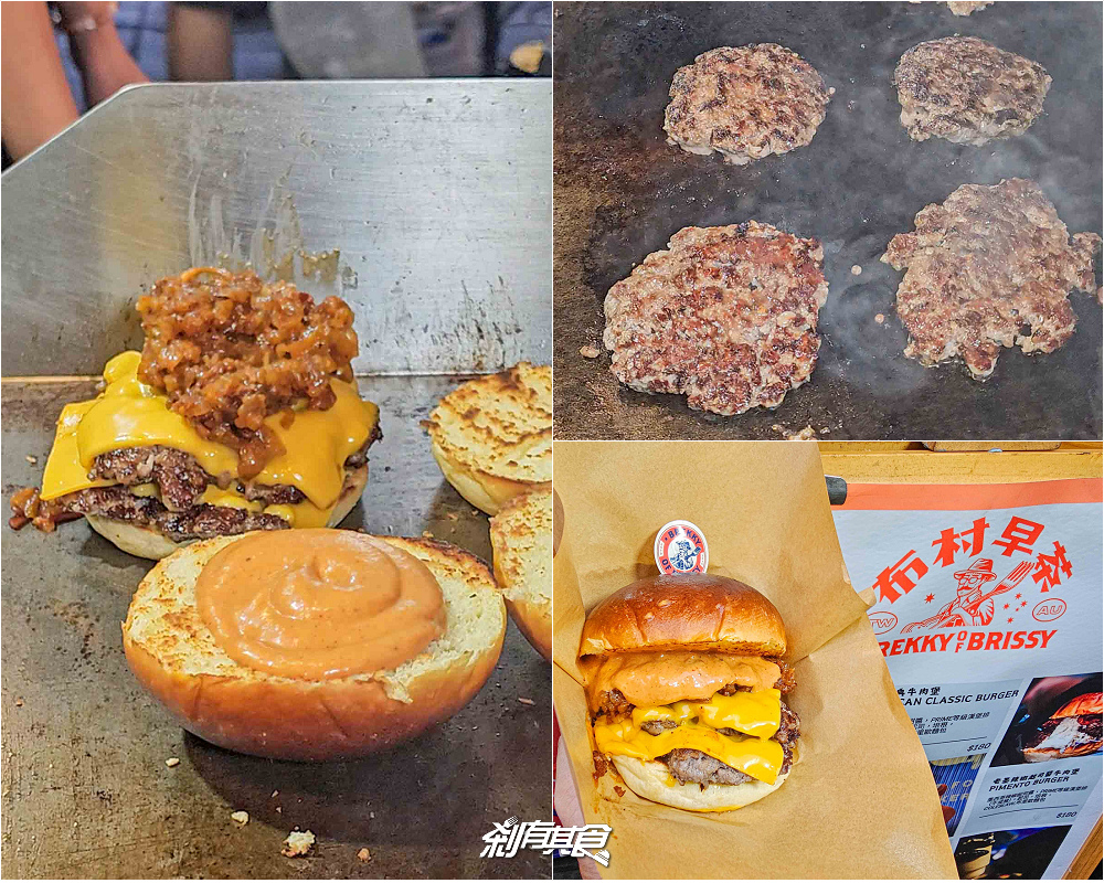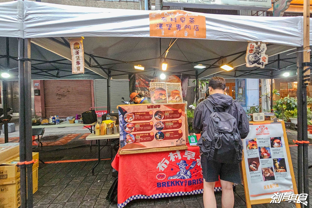 是餐車起家、有台版五星主廚快餐車之稱「布村早茶漢堡專門店」是各大市集的常客,現在南屯大墩二街86號有店面,但老闆仍然很有熱情的出攤,之前就在我的口袋名單裡,但一直沒有機會吃到,沒想到第一次吃就是在「台中精釀啤酒節」,賣的是各種現作漢堡,像是花生發福堡、美式經典牛肉堡都很多人點,不吃牛肉的人就點「老撕雞肉肉堡」。