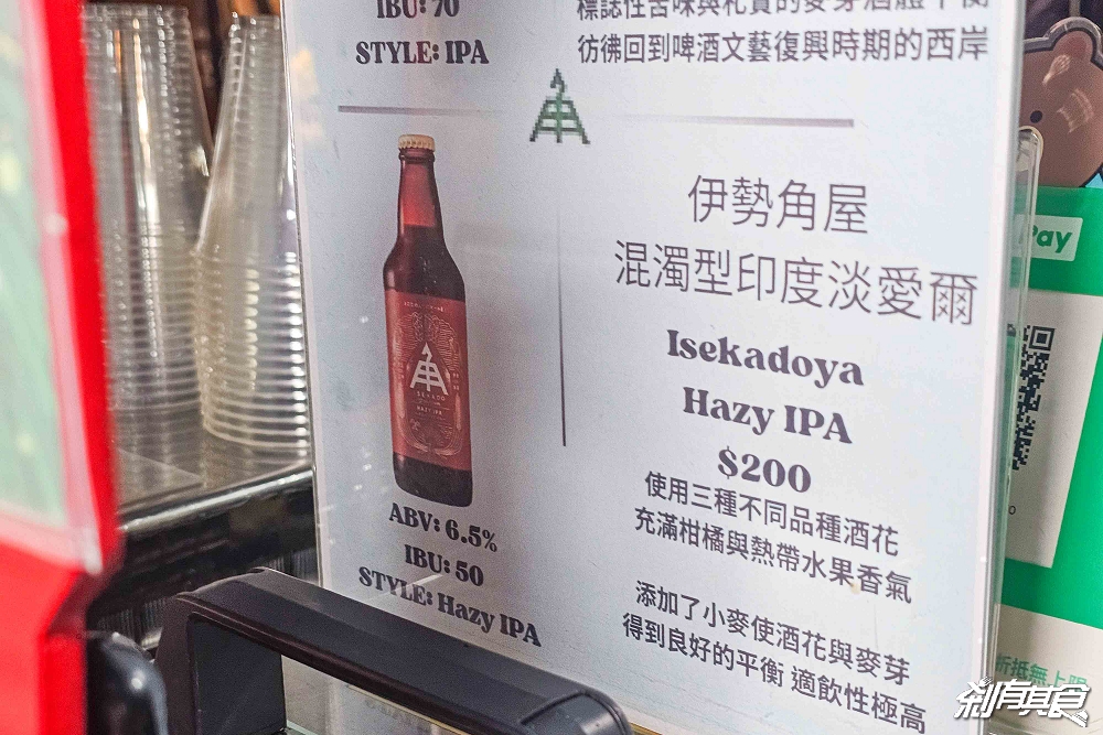 來自日本的「伊勢角屋精釀」這次帶來很多款很特別的啤酒,我們喝到「混濁型印度淡愛爾」是使用了3種不同品種酒花來製作,喝起來有柑橘、熱帶水果香氣,不只好喝,酒標也很好看😆