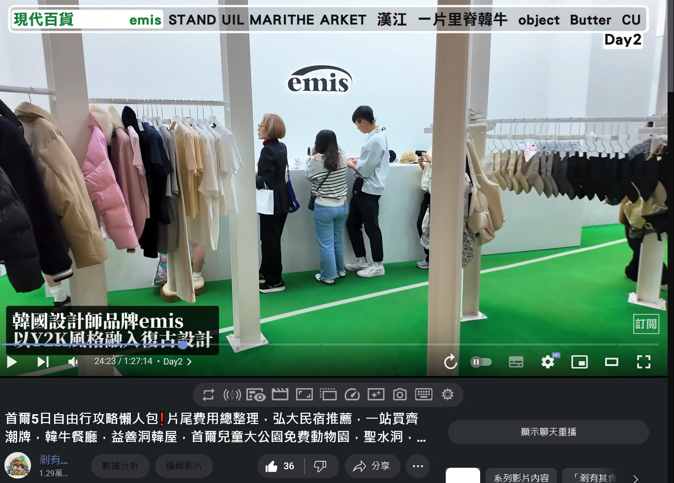 我們有去過 EMIS首爾現代百貨分店,店內設計的很漂亮、品項也比「EMIS台中店」更多,我們有拍影片有興趣可以看看,片長一小時27分很適合端午連假在家觀賞喔😆