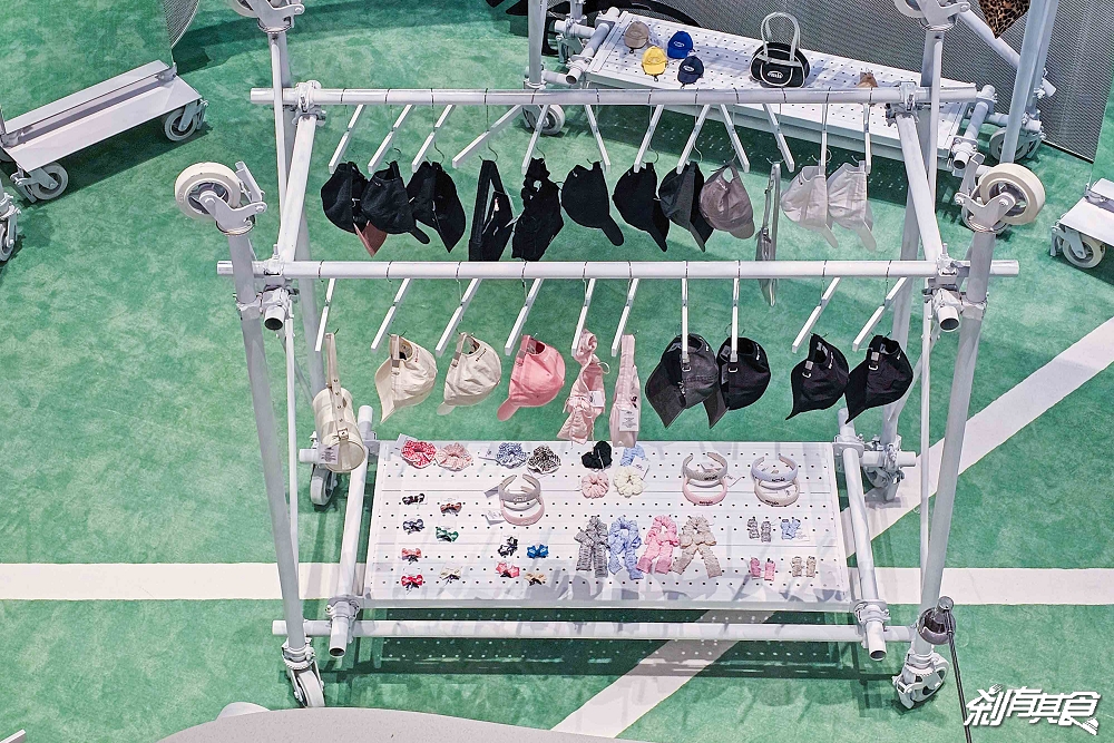 底下綠色地板、加上白線有點像網球場的設計在這裡也忠實還原了,店內的商品都有依照顏色分開擺放,這樣很方便尋找👍