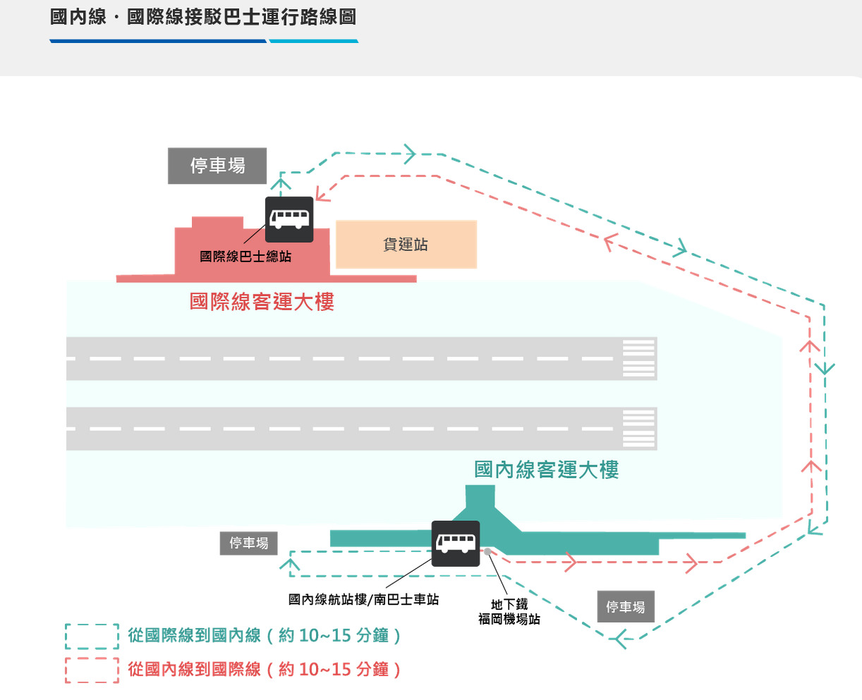 | 免費航廈接駁巴士 | 免費 | 10 分鐘(至另一航廈) | 免費 | 10 分鐘(至另一航廈) | 中等 | 僅用於航廈之間轉機。對於搭乘地鐵或部分巴士的國際旅客至關重要。班次頻繁。 |