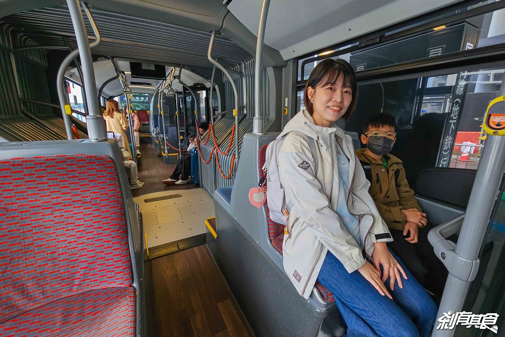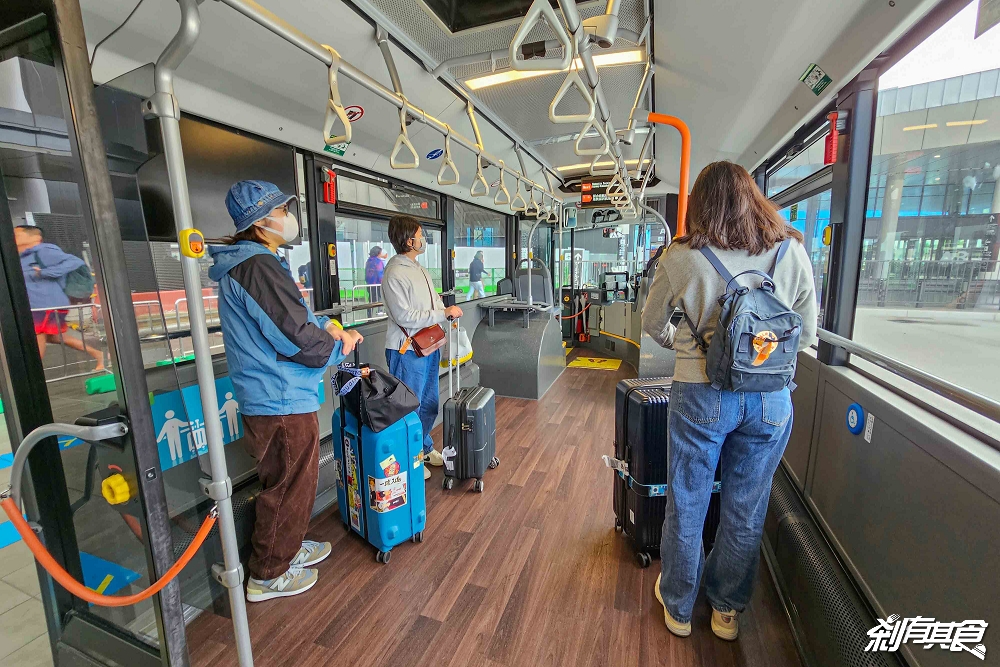 「免費航廈接駁巴士」車上非常寬敞,設計的很適合放大行李箱,也有少數座位可以坐。
