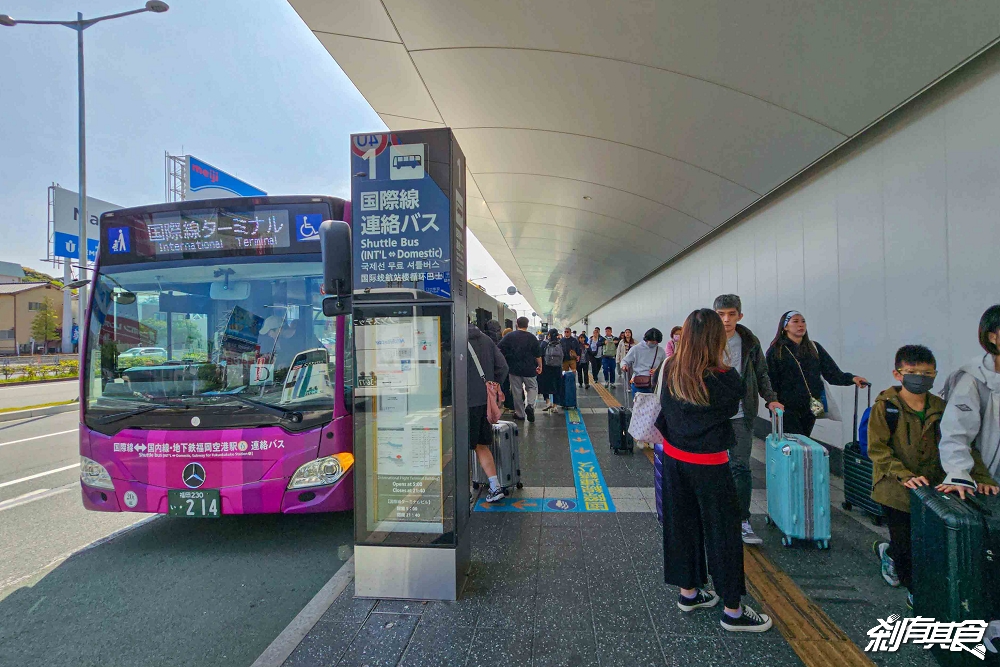 從福岡機場出關後,無法直接轉搭地鐵,而且要從國際線巴士總站搭乘「免費航廈接駁巴士」到國內線航樓才能轉搭,值得一提是這次整修完之後,往返地鐵站的免費接駁巴士專用道也延長了,讓車程從15分鐘減為10分鐘,感覺得到日本政府真的很重視觀光👍
