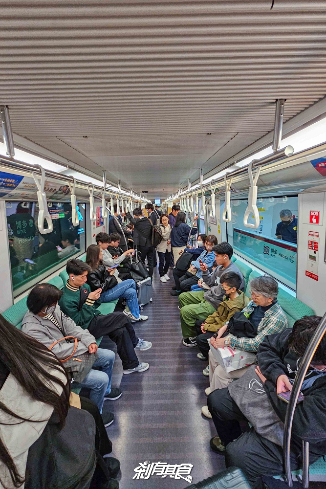 坐個2站就會到「博多」,坐4站到中洲、5站到天神,也能在博多轉搭「七隈線」去櫛田神社、天神南、藥院等地。