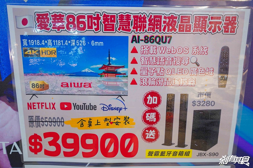 「愛華 86吋 智慧聯網液晶顯示器」原價 59900元,F只要 39900元,現省 20000元,還加碼送「聲霸藍牙音箱組 (市價3280元)」,這個優惠真的太誇張啦!