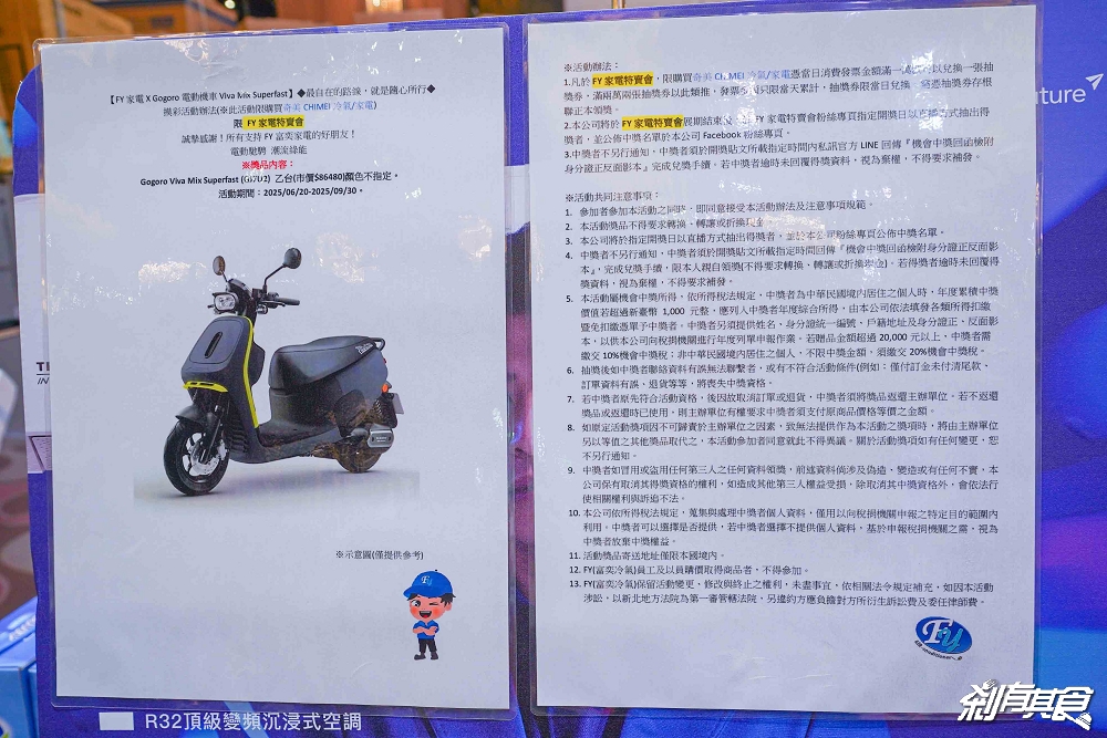 買奇美冷氣/家電,憑當日消費金額滿1萬就可以兌換一張抽獎券,滿2萬兌換兩張抽獎券以此類推,可抽 gogoro 乙台(市價86480元),活動期間2025/6/20-9/30。
