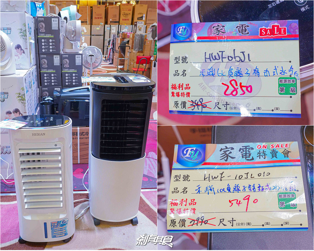 「禾聯 6L負離子移動式水冷扇」原價 3490元,福利品驚爆特價 2850元,現省 640元。「禾聯 10L負離子移動式水冷扇」原價 7990元,福利品驚爆特價 5490元,現省 2500元