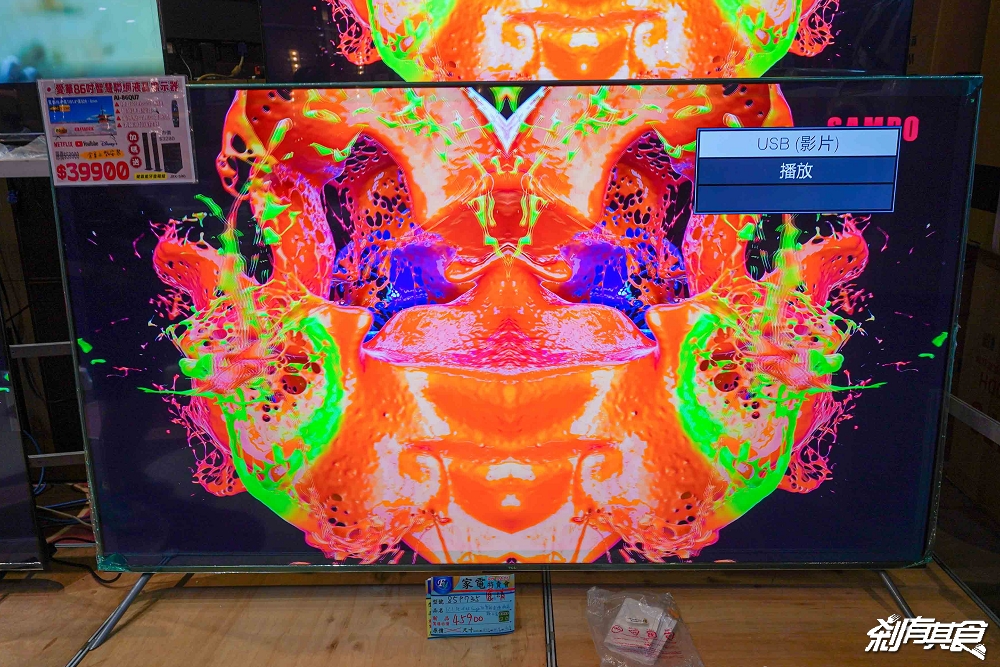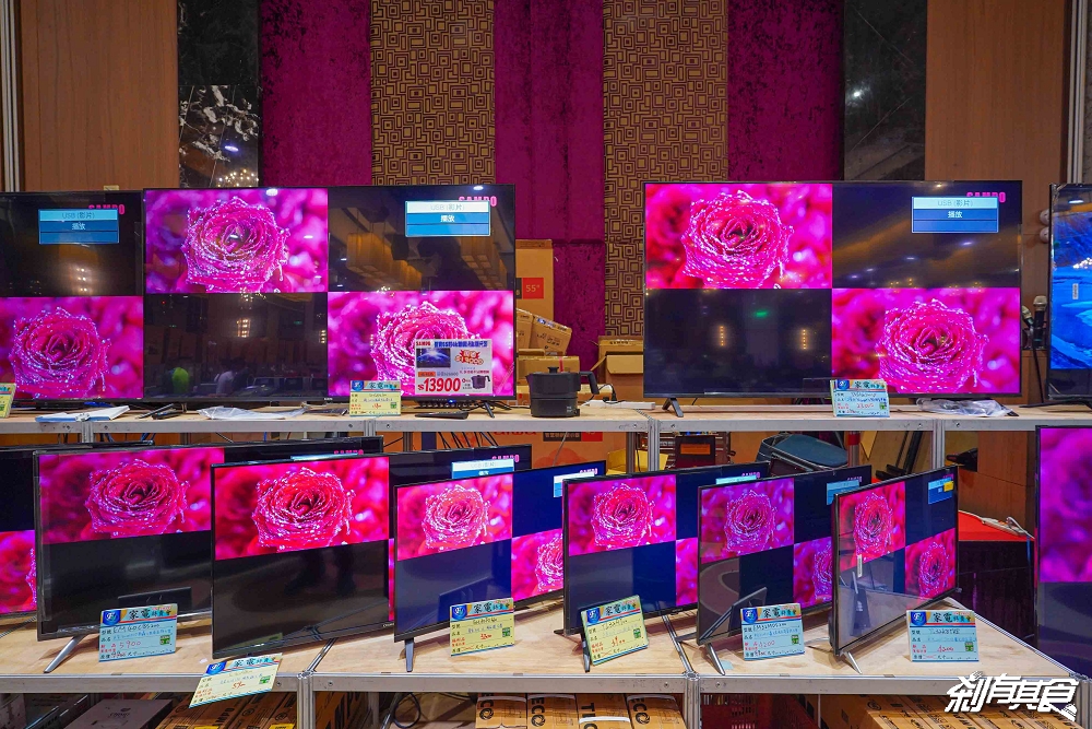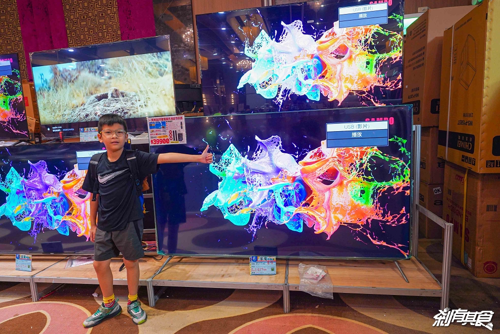 電視一字排開規格32吋~86吋的都有,現在的電視面板越來漂亮,價格也很漂亮。