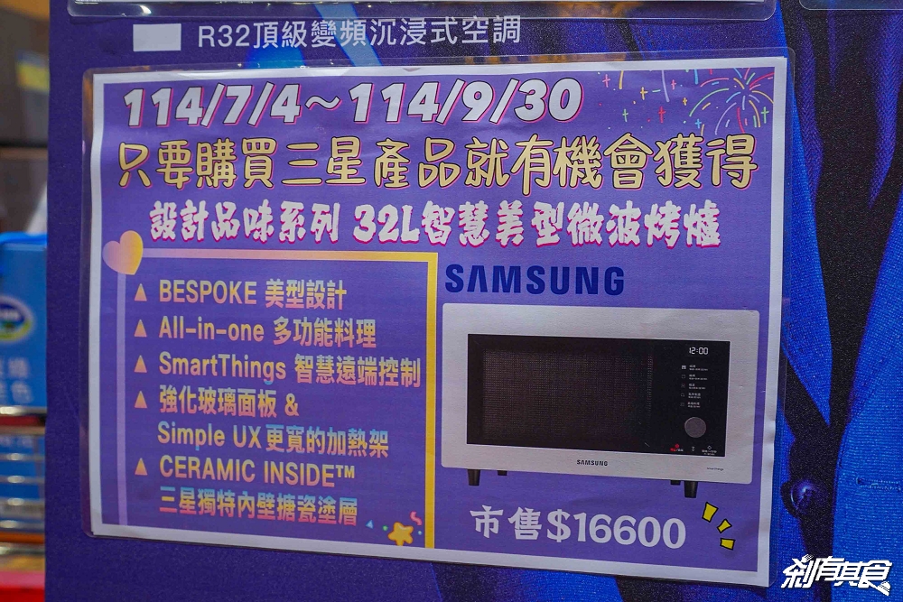 2025/7/4-9/30 只要購買三星產品就有機會得到 32L智慧美型微波烤爐 (市售16600元)。