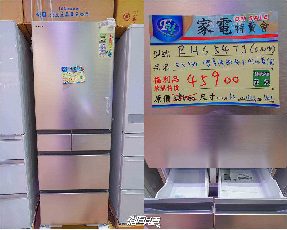 「日立 537L日製變頻鋼板五門冰箱」原價 58400元,福利品驚爆特價只要 45900元,現省 12500元,喜歡美型冰箱可以選這台,容量看起來超大的!