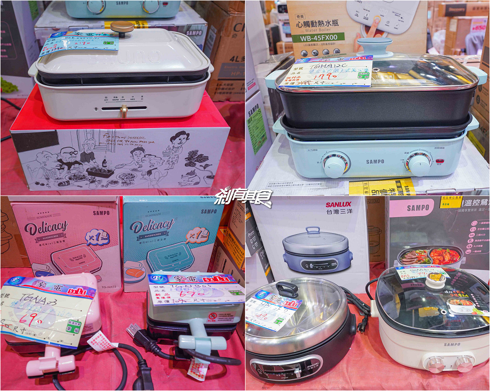 「電陶爐、IH電磁爐、調理鍋、電子鍋、電鍋」價格都很便宜,想汰舊換新正是時候!其他像是熱水壺、果汁機、烤面包機、小電鍋等,這裡都有,都是「看到會驚訝、這怎麼可能?!」的價格。