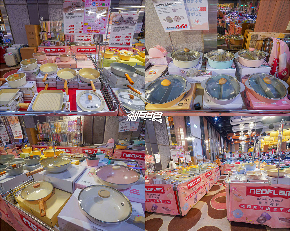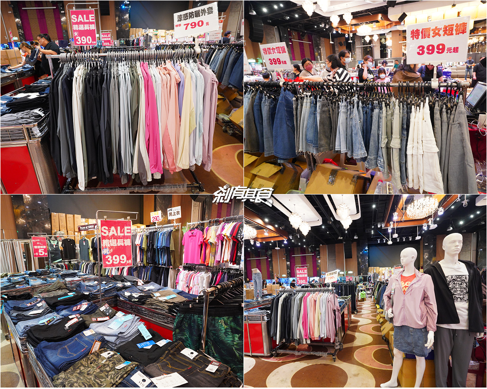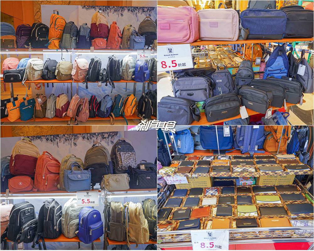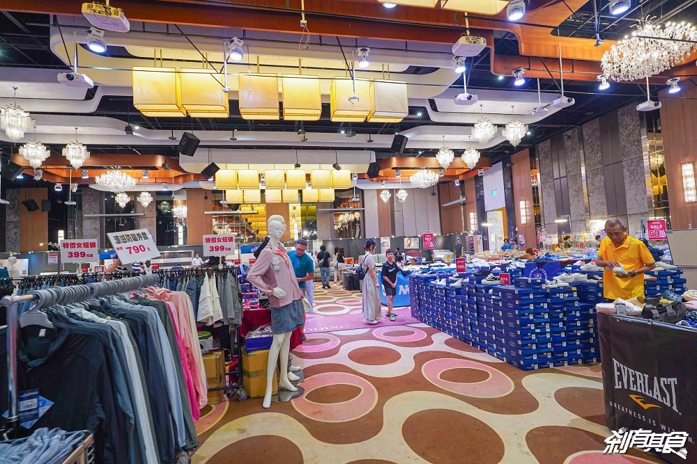 百貨商品一應俱全有全面下殺3折起,玩具大賞、皮件、行李箱先此場買再9折優惠、韓國不沾鍋具、法頌寢具,墨達人服飾、G.P各式鞋款、童裝5折出清、袋鼠童鞋、PIPPY童裝⋯等全面出清。