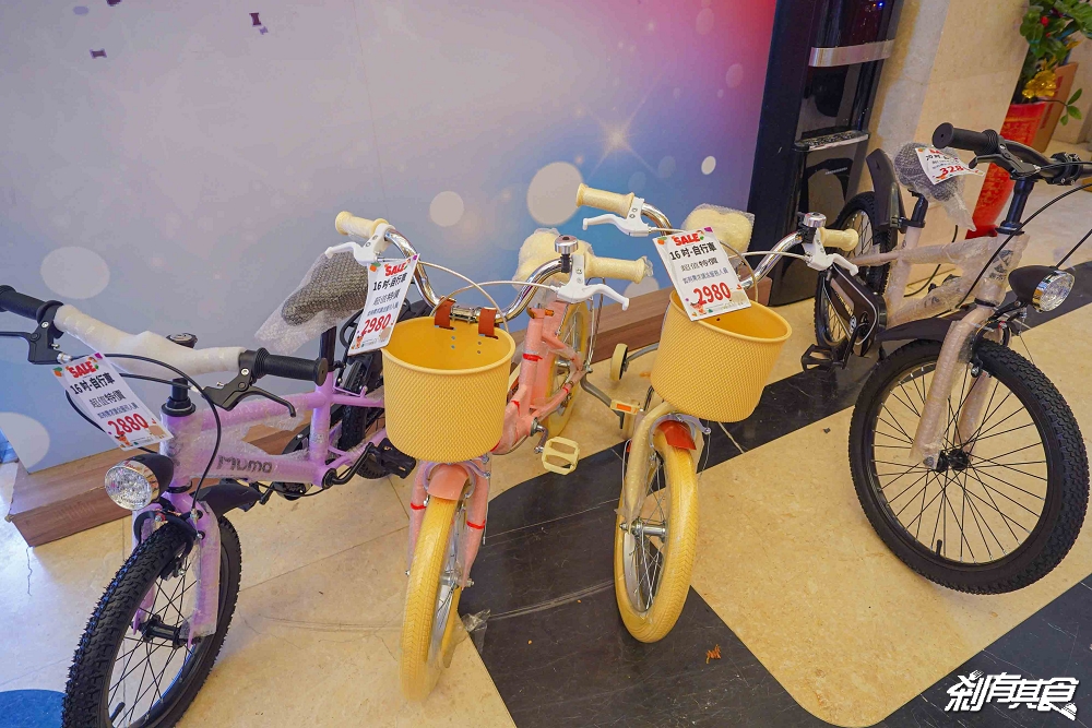 腳踏車、學步車、玩具車、扮家家酒等玩具4折起,腳踏車有多種款式可選,玩具的選擇也很多,小朋友來到這裡應該會不想走,哈哈