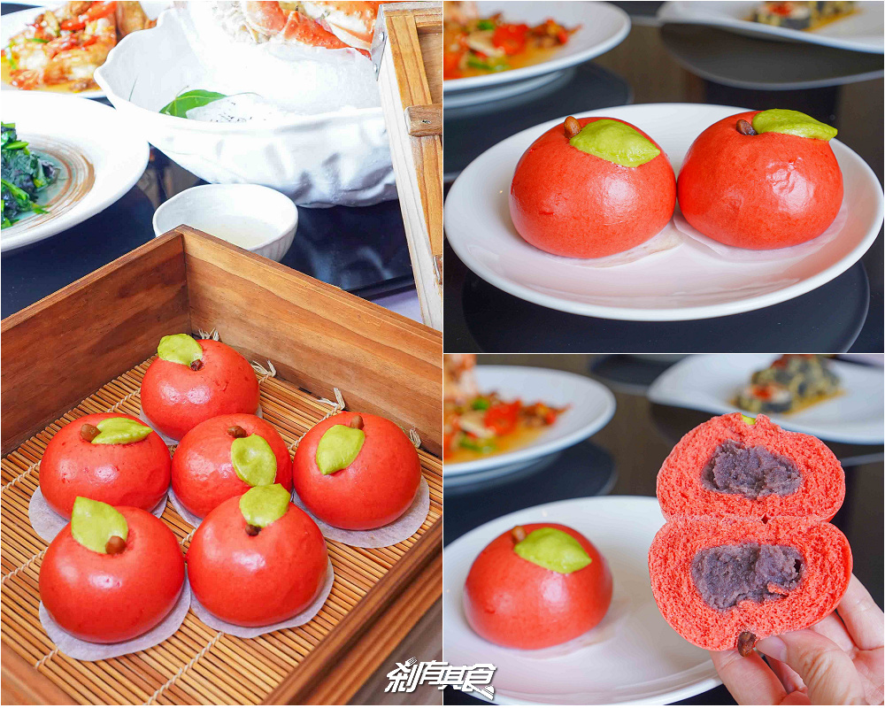 「平安果饅頭」是蘋果造型,看起來可愛極了,饅頭蓬鬆有彈性,口感輕盈不厚重,中間是紅豆餡甜度適中不會過膩,而且有「平平安安」的祝福之意。