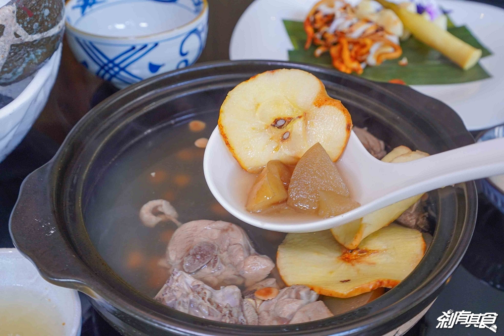 湯色清澈、入口回甘,沒有過多油膩的負擔,取而代之的是一種自然純粹的鮮甜。雞肉吸收果香湯汁,肉質細嫩卻不失彈性,每一口都令人回味。
