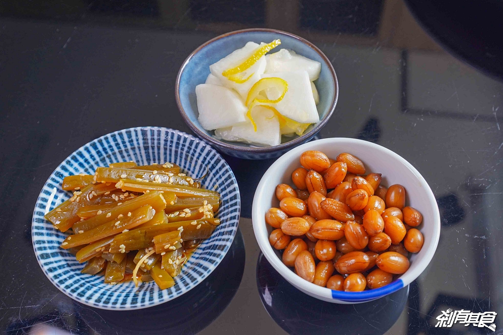 三品小菜,柚子蘿蔔、海帶、滷花生,每一種很開胃。