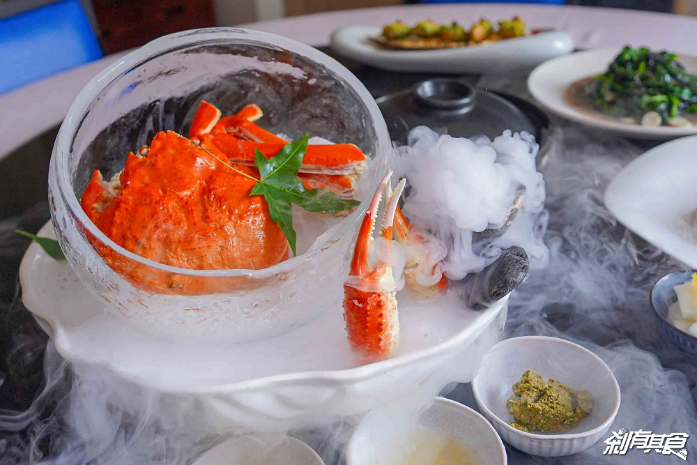透明冰碗加上乾冰,真的有種仙氣飄飄的感覺,響海鮮不僅食材,同樣也重視菜品呈現的感覺,大家可以趁機多拍幾張美食,畢竟在台灣吃松葉蟹的機會可不是天天有,要趁還有貨時趕緊吃一波~