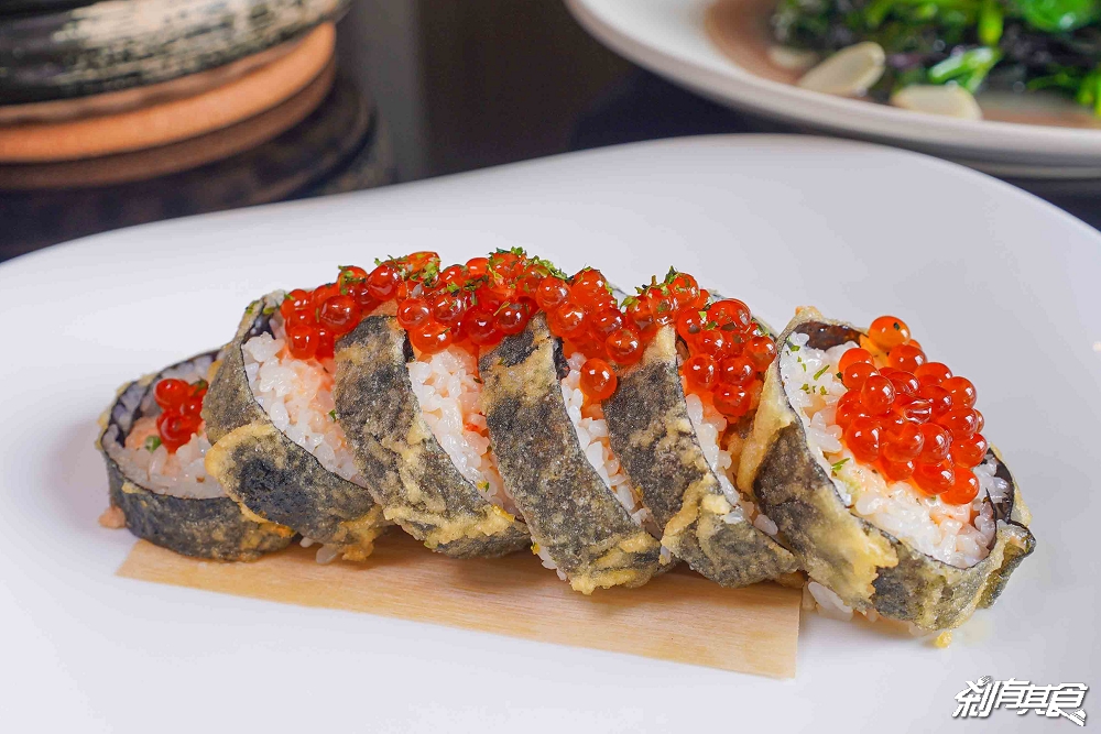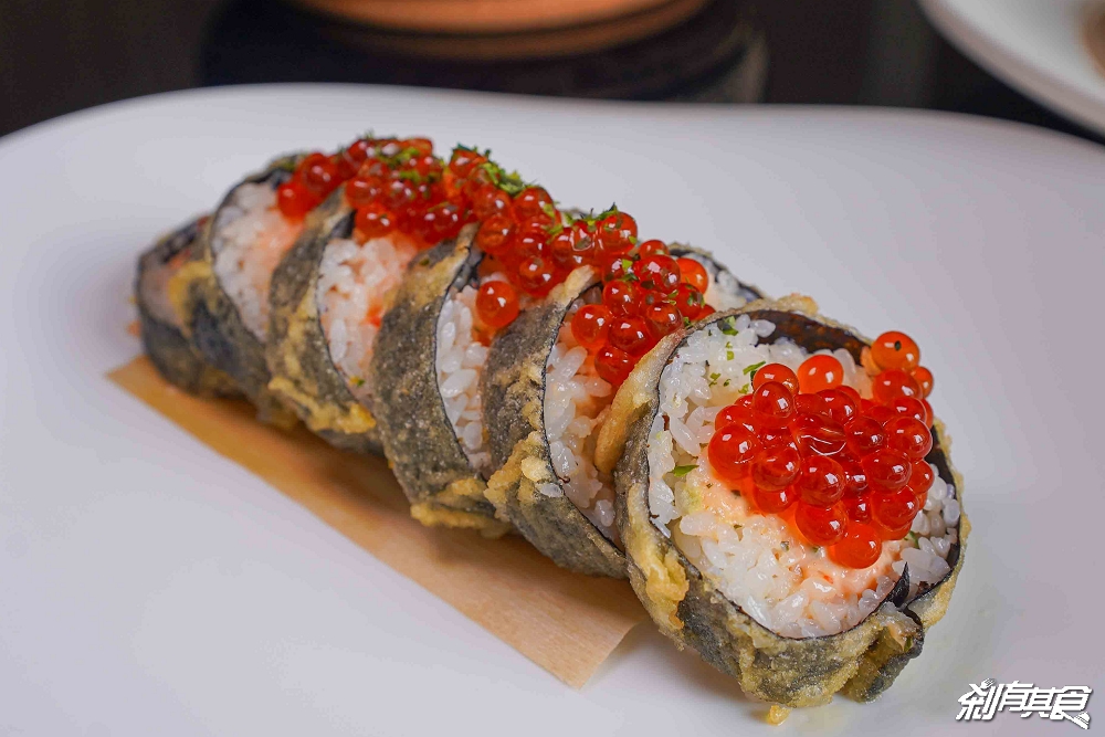 這道也是功夫菜,使用日本醋飯加入龍蝦沙拉,捲成壽司之後再去油炸,呈現出外酥內軟的雙重口感,再加上邪惡的鮭魚卵,好吃又有飽足感。