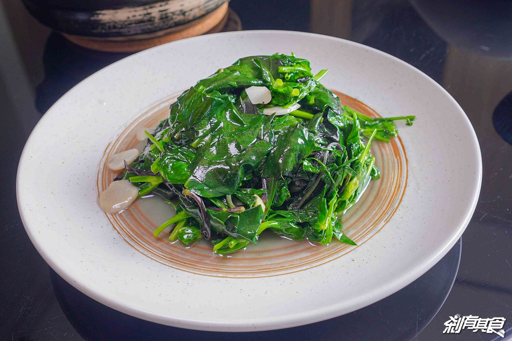 使用「紅鳳菜、川七、豆苗」來清炒,簡單調味吃得到三種蔬菜不同口感,層層交疊下清爽好吃。