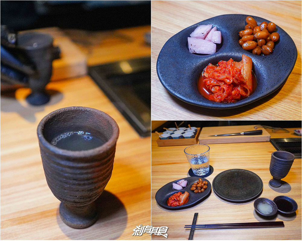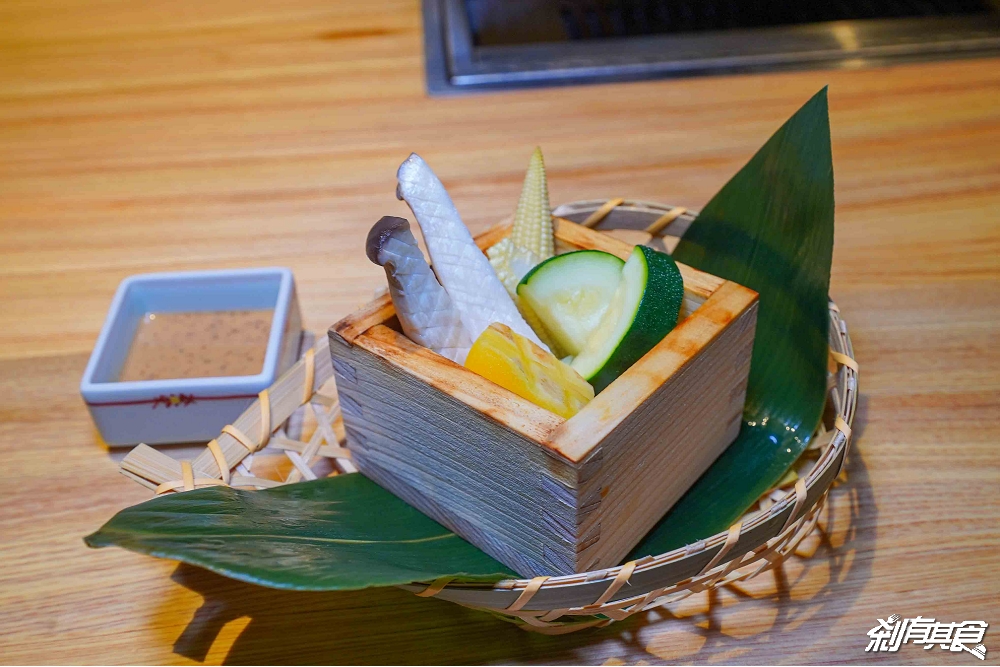 今天我們吃的是「和牛精選套餐」,最吸睛的就是這個和牛肉盤,擺盤非常美,師傅會一一介紹和牛部位並且幫我們代烤,各部位會有建議熟度,也可以依個人口味請他調整,看著和牛在火焰中散發出香氣,再一口吃掉真的好幸福,根本就是味覺與視覺的雙重享受。