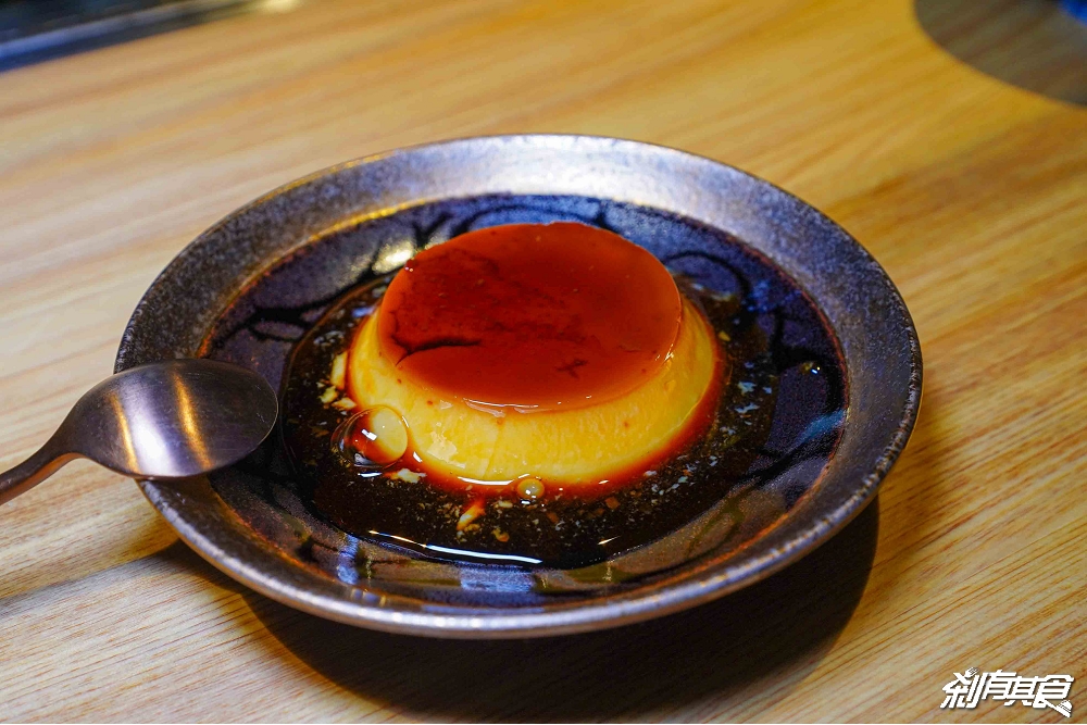 飯後甜點是「焦糖布丁」,師傅還模仿日本東京布丁仙人的手法,讓布丁脫模,真是到最後一刻都不放棄同時滿足你的視覺及味覺,讚讚!