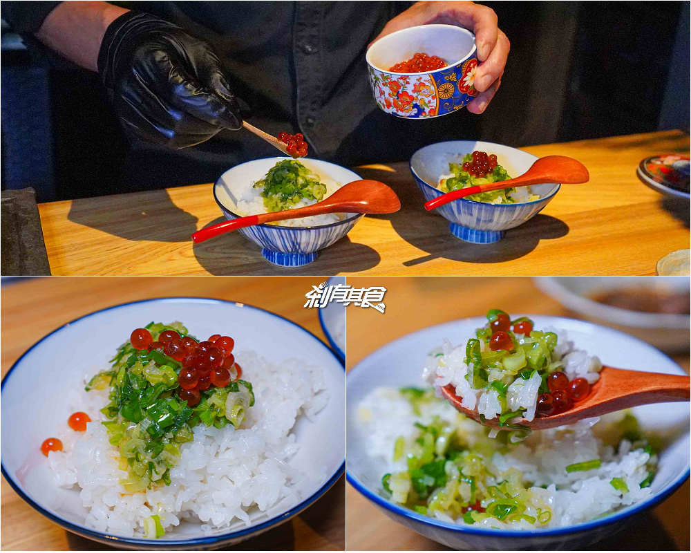 「蔥鹽鮭魚卵釜飯」選用霧峰益全香米來製作,口感Q彈有嚼勁,尾韻帶有芋頭香氣,搭配使用蝦油爆炒的鹽蔥及北海道鮭魚卵,吃起來鹹香又有鮮味,本來已經很飽了,但吃上一口居然開胃了,一口接一口停不下來,在這裡也提供一個邪惡吃法,就是上一道「月見紐約客壽喜燒」肉吃完了,那個醬汁可先別收走,加到釜飯裡一起吃也超讚的啦~~ 想到我口水又要流下來了😆