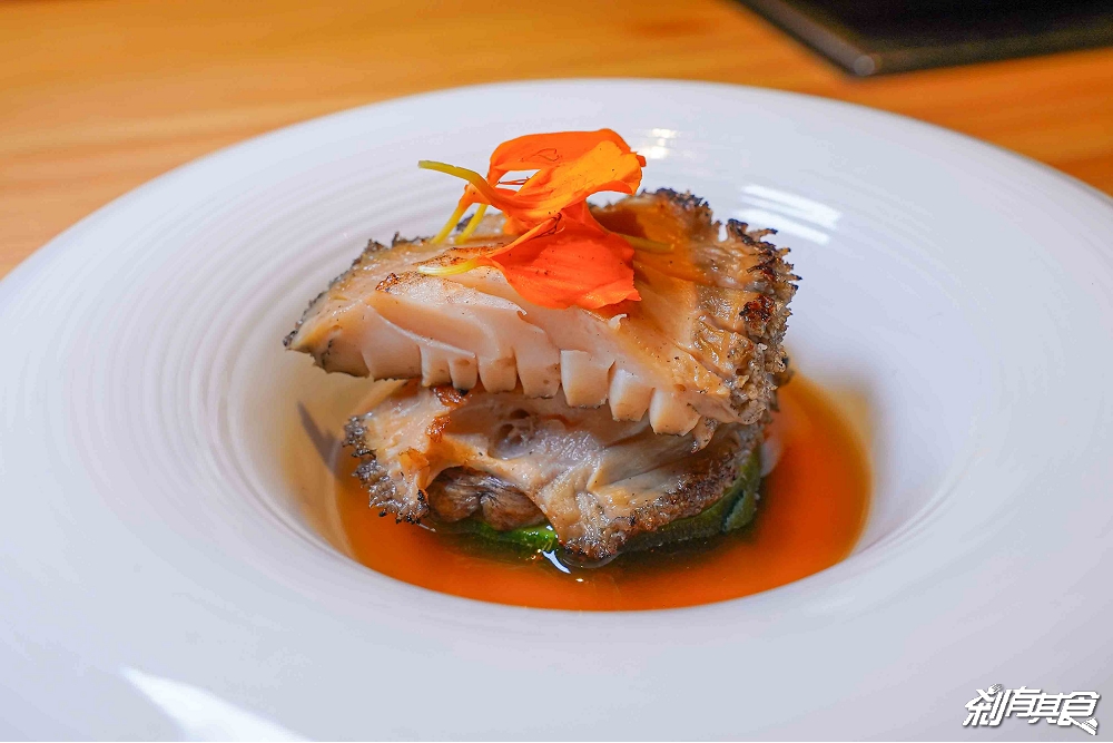 上面橘色的花瓣是九雀菊,配色十分好看,他們不僅在食材、料理手法、擺盤等各細節都很注重,連服務也是很貼心、到位👏