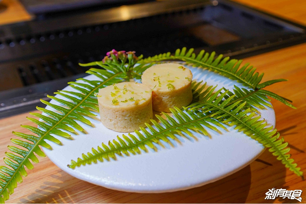 一般我們在燒肉店清口腔味道的是各種口味的醋飲,在這裡居然是以「檸檬塔」來呈現,一口大小的檸檬塔,口感非常酥脆,濃郁的檸檬酸香會在口中爆發,帶來清爽的刺激感,與之平衡的是恰到好處的甜味,吃完之後,我的另一個”甜點胃”都打開了😆