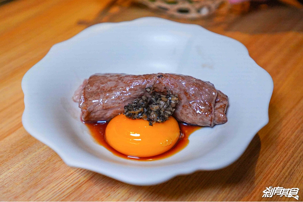 再來這道「月見紐約客壽喜燒」就是招牌菜了,我在日本吃過的燒肉店還把這道當作單點,現在不用飛日本在台中就能吃到!