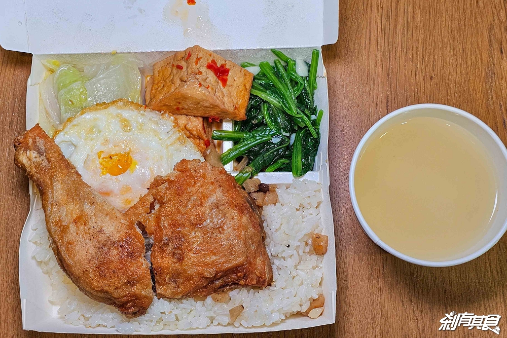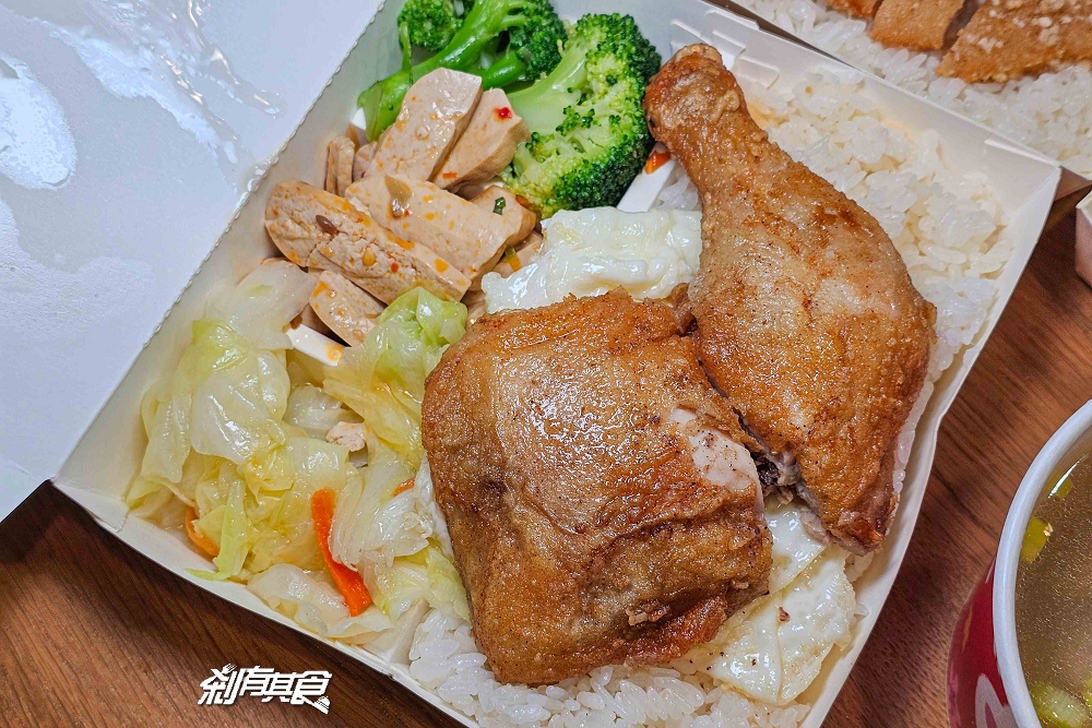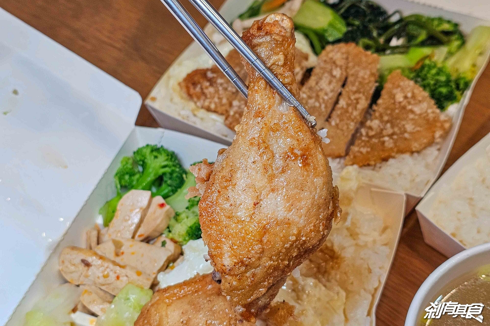 來看看這個炸雞腿,不誇張真的好大一個,居然只要100元!某大元便當也要130元,走的是薄皮嫩雞路線,外皮微酥,灑點胡椒粉很香很好吃。