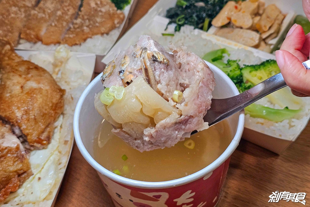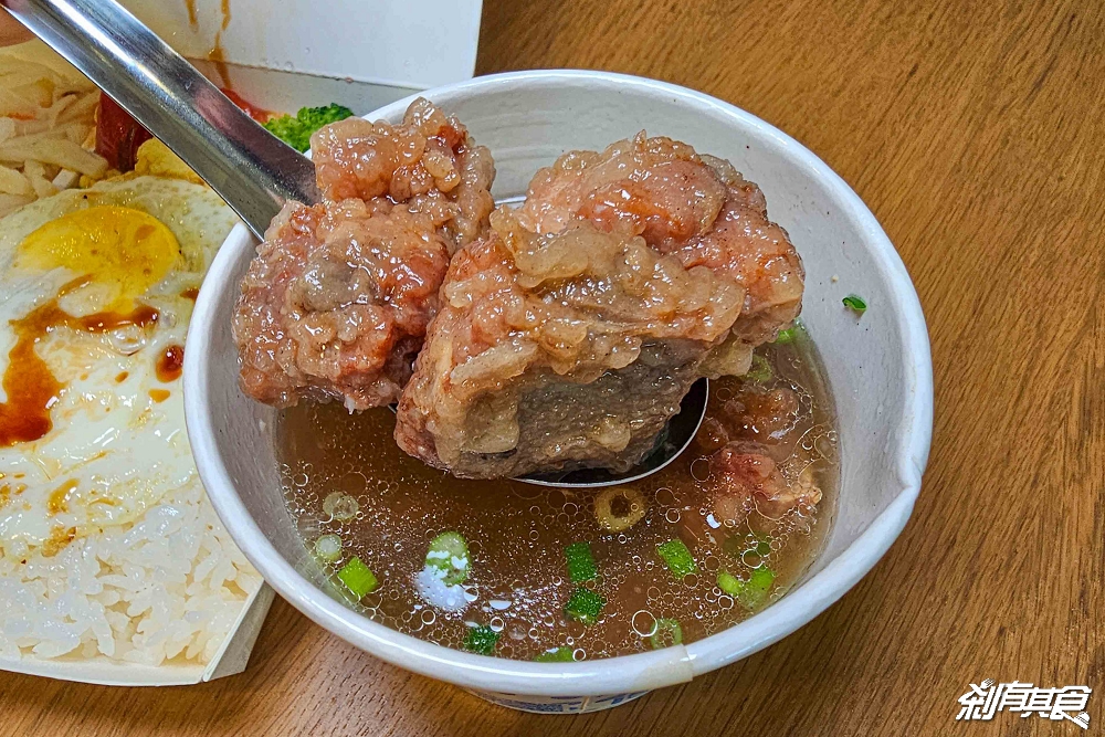 這個便當很特別,剛打開想說大姐是不是忘了放排骨酥? 結果不是!排骨酥居然是以「排骨酥湯」的形式呈現,等於直接多了一碗湯,好讚啊!