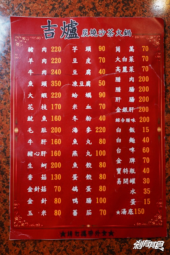 台中臉盆火鍋「吉爐炭燒沙茶火鍋」文章給大家參考囉~也歡迎加入「剎有其食FB粉絲團、剎有其食IG」,隨時追蹤最新訊息!